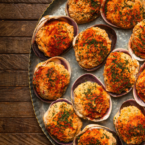 ✔️ 8 Stuffed Clams – Ocean-kissed, golden-baked, and the perfect first-quarter bite